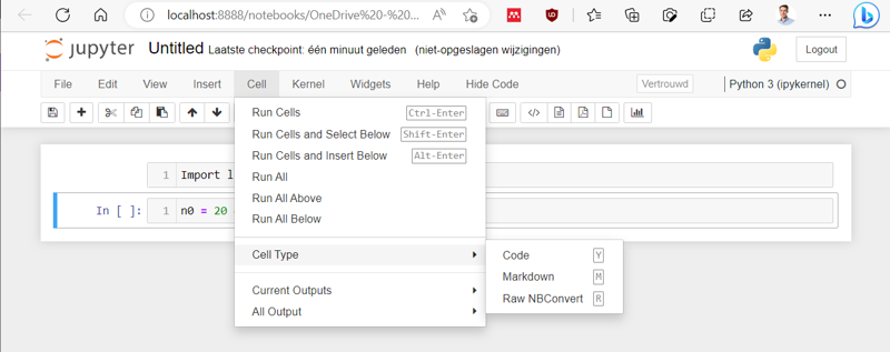 Notebooks consist of cells which can contain code or text/figures (in markdown language). You can choose this cell type for each cell: