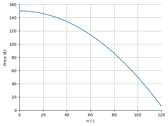 Fig. 1.1 \(Price = 150 - 0.01n^2\)#