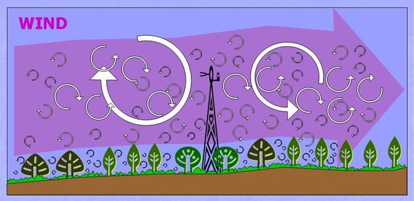 The eddy covariance (or eddy correlation) method measures vertical turbulent fluxes within the atmospheric boundary layer to estimate evaporation. The method requires turbulence in the air so that a horizontal wind flow consists of numerous rotating eddies (turbulent vortices of various sizes) with each eddy having horizontal and vertical components (see Fig. 5.10). The eddies transport an entity of interest. This can be heat, water vapor or gases (Burba, G. and Anderson, D., 2010).