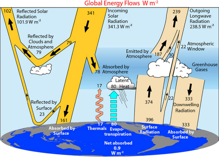 Fig. 5.2 Global energy flow – data from (Kevin Trenberth, John Fasullo and Jeff Kiehl, 2009)#