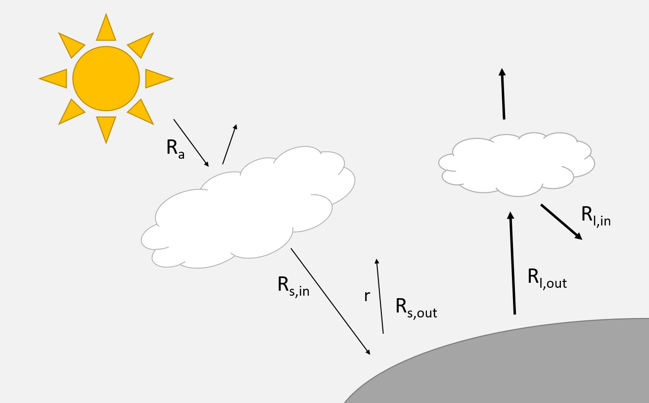 Fig. 5.4 Incoming and outgoing radiation (R). (Own work)#
