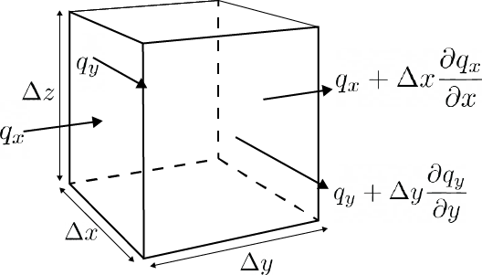 Next, dividing by \(-\Delta x \Delta y \Delta z\) gives: