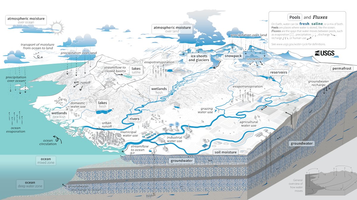 Fig. 1.2 Global water cycle diagram – photo by (U.S. Geological Survey, 2022).#