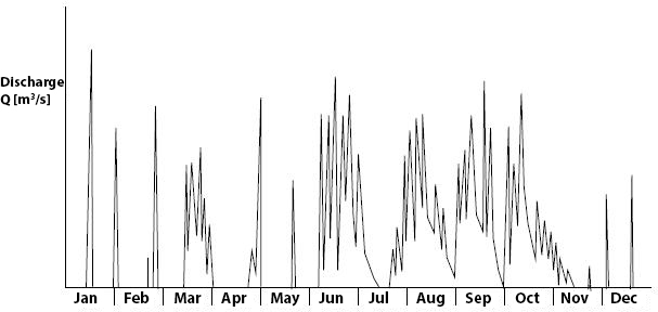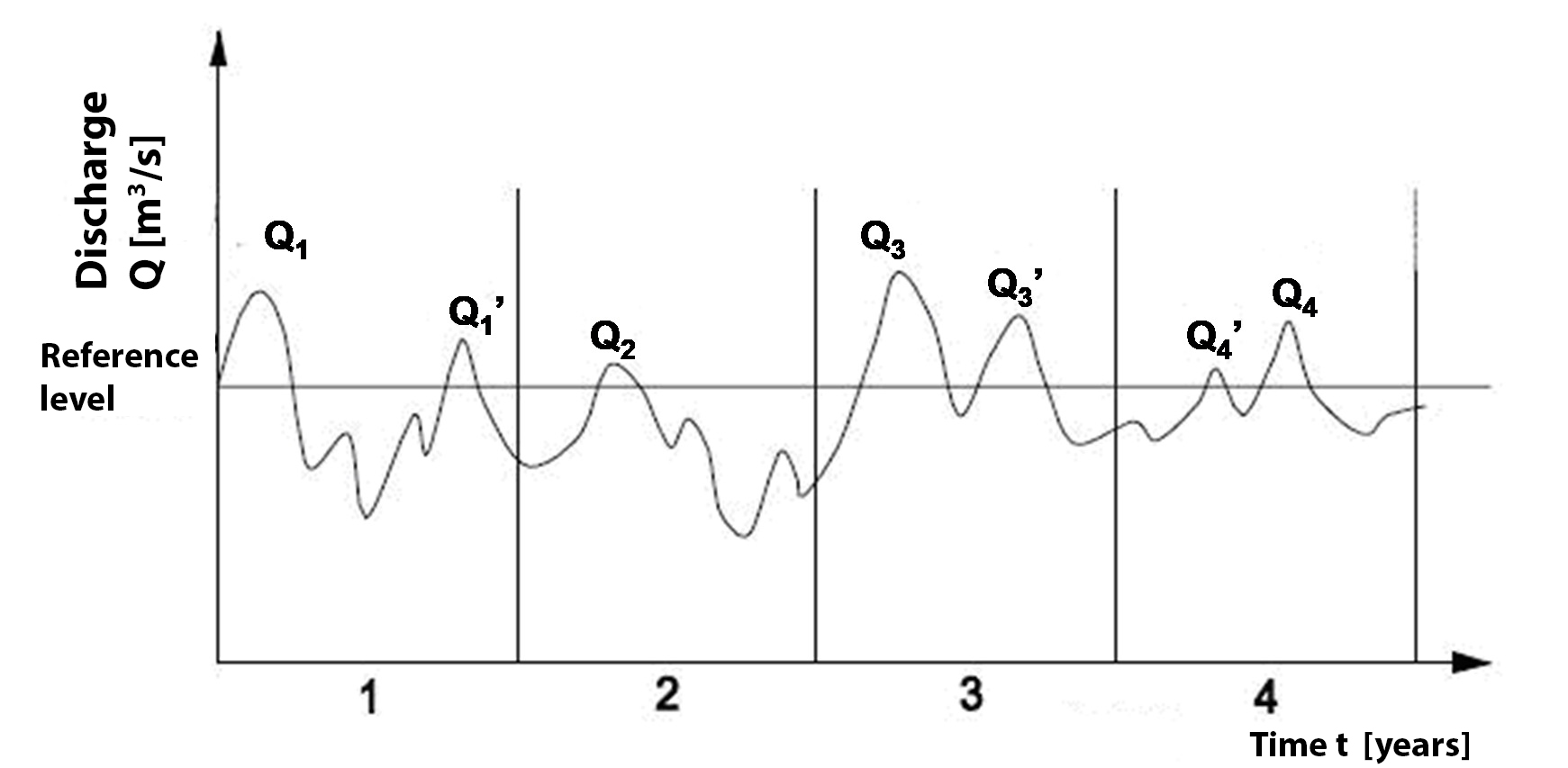 Determining a reliable relationship between the measured variable water level and the corresponding discharge is essential at gauging stations where continuous water level recordings need to be converted into continuous discharge records. This relationship depends on the characteristics of the river reach and the distance between the discharge measurement and water level recording. The condition of a natural river is usually not stable, so new discharge measurements need to be made from time to time; especially after high flows, a river can undergo significant changes, altering the \(Q\) - \(h\) relationship.
