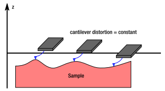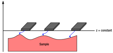Constant height mode is de simpelste methode aangezien de AFM niet hoeft te corrigeren. In deze methode wordt de arm van de AFM op dezelfde hoogte gehouden tijdens het gehele scanproces. Deze methode werkt alleen voor hele gladde preparaten want als het “dal” te diep is verliest de tip contact en is er niks meer te zien met de AFM.