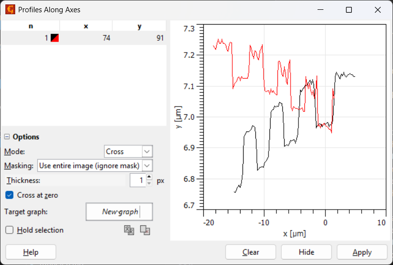 Met het derde icoontje kan een profiel over een X- en Y-as tegelijk worden gemaakt.