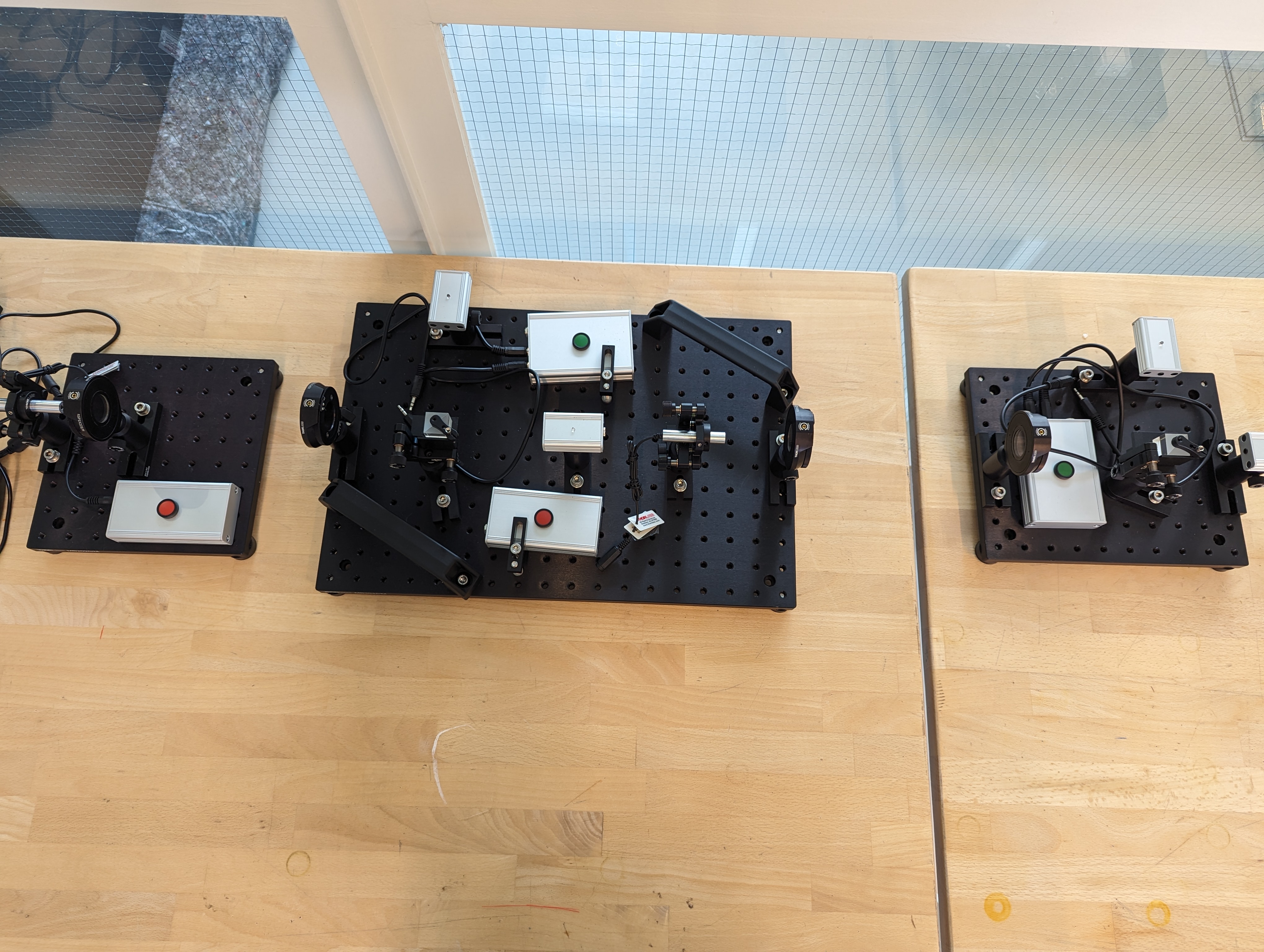 Het doel is om Eve uit te lijnen zonder de opstellingen van Alice en Bob te verstoren, aangezien de afluisteraar geen invloed heeft op de zender en ontvanger. Zet vervolgens de sensorelektronica’s in meetmodus.
