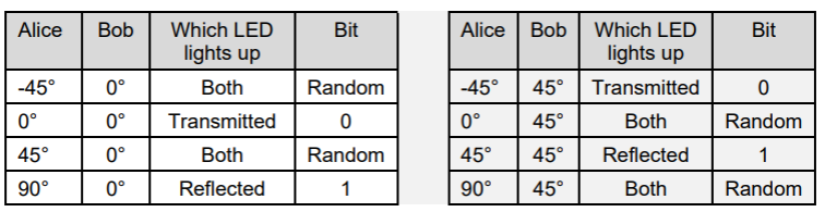 - Als Alice -45° kiest, verzendt ze een 0 in de “x” basis.