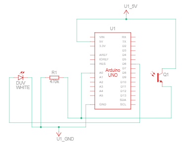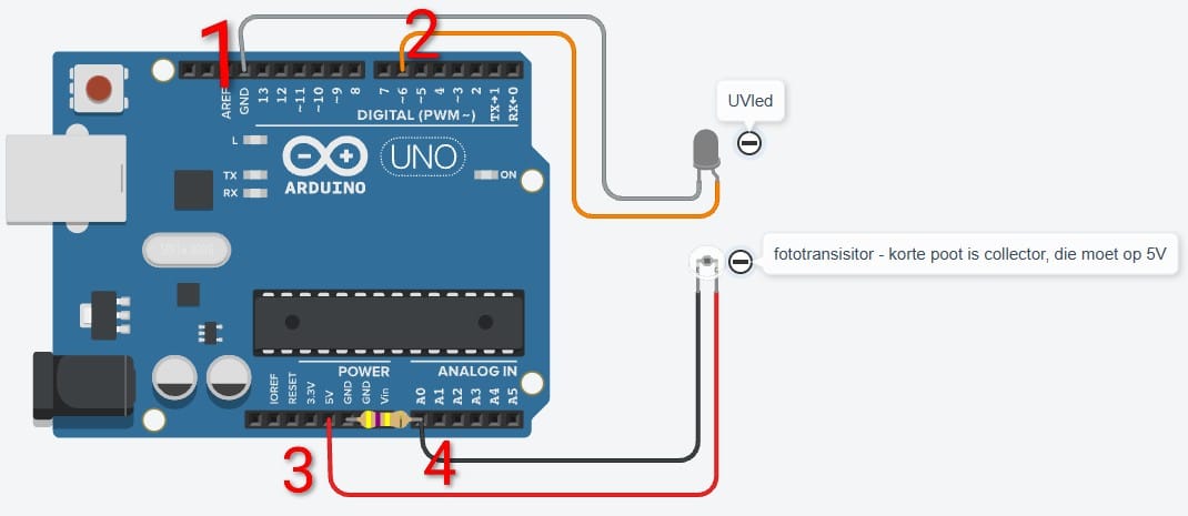 softwareFototransistor (Kingbright l-53p3c) (korte poot is collector, aangesloten op 5V, lange poot op AO)
