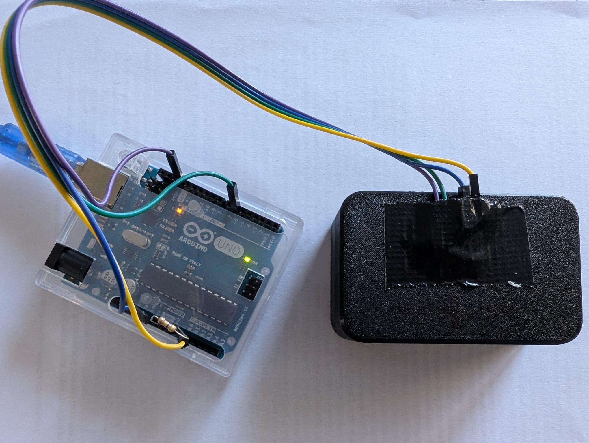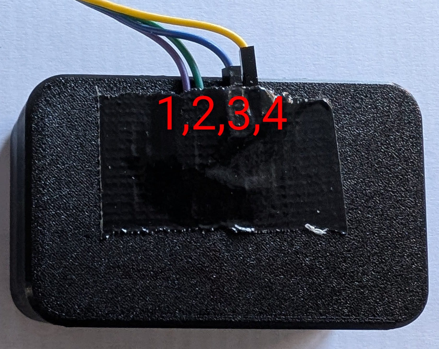 Doosje (3D geprint), lichtdicht, met in het deksel 4x 1mm gaatje geboord. Download hier de 3D bestanden (STL):