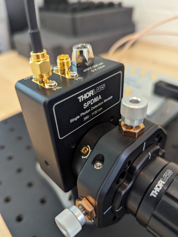 Time-tagger, die van elk gedetecteerd foton de tijd labelt.
