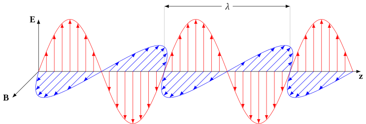 Figuur 3: Elektromagnetische (licht)golf. Afbeelding Francois~frwiki.