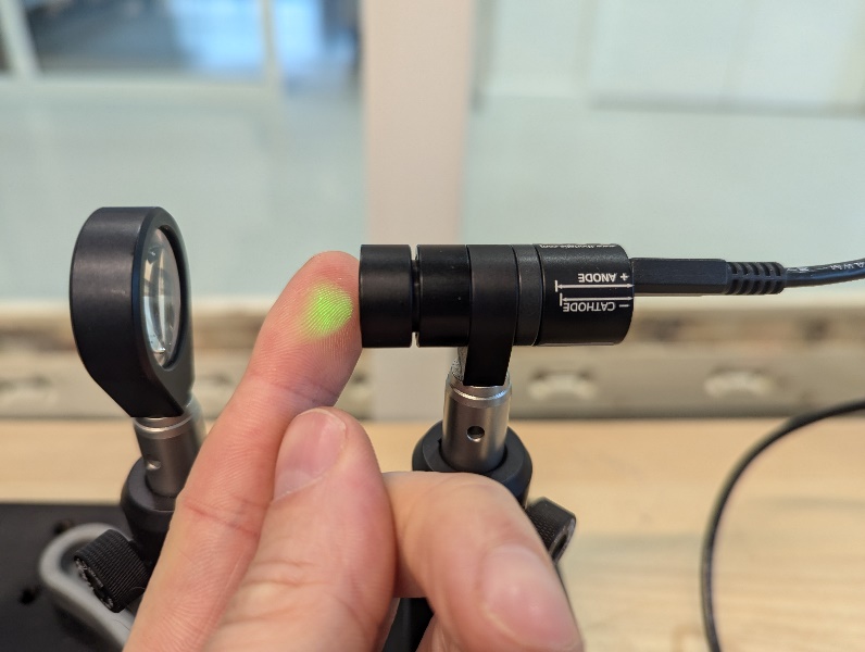 \[\lambda = \frac{sin(\Theta + \alpha) + sin(\alpha)}{N}\]Vergelijk je gevonden waarde met de theoretische golflengte 532nm van het bandpass filter